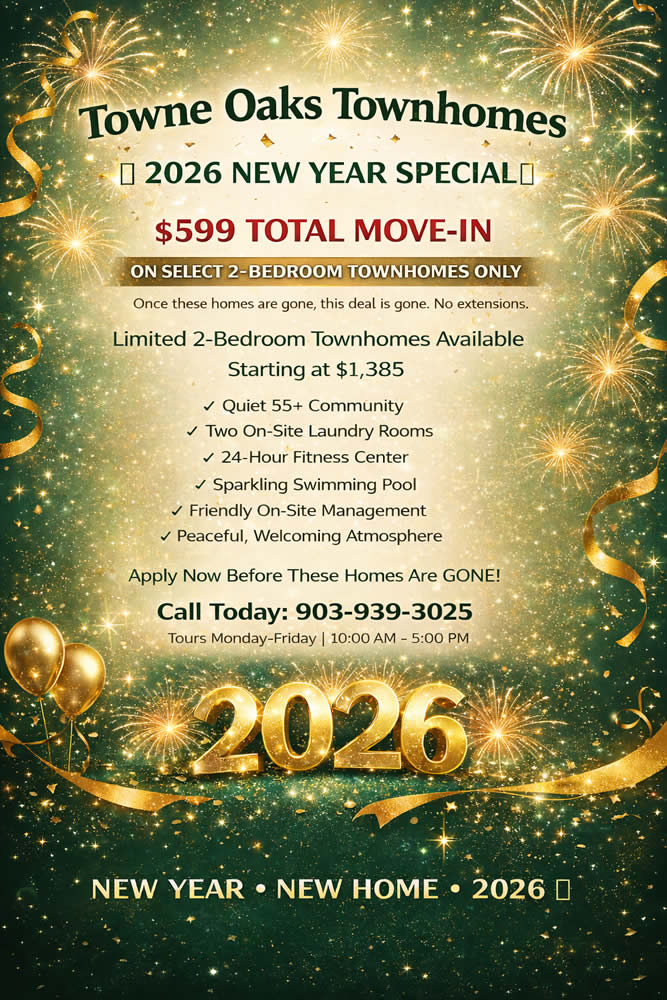 Enjoy maintenance free living at Towne Oaks. Call today for more details.